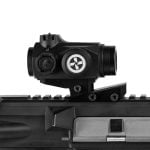 This height-adjustable riser allows you to fine-tune the height of your red dot by sliding the top mount on the diagonal rail. It’s perfect when using face protection and achieving the most comfortable aiming position.