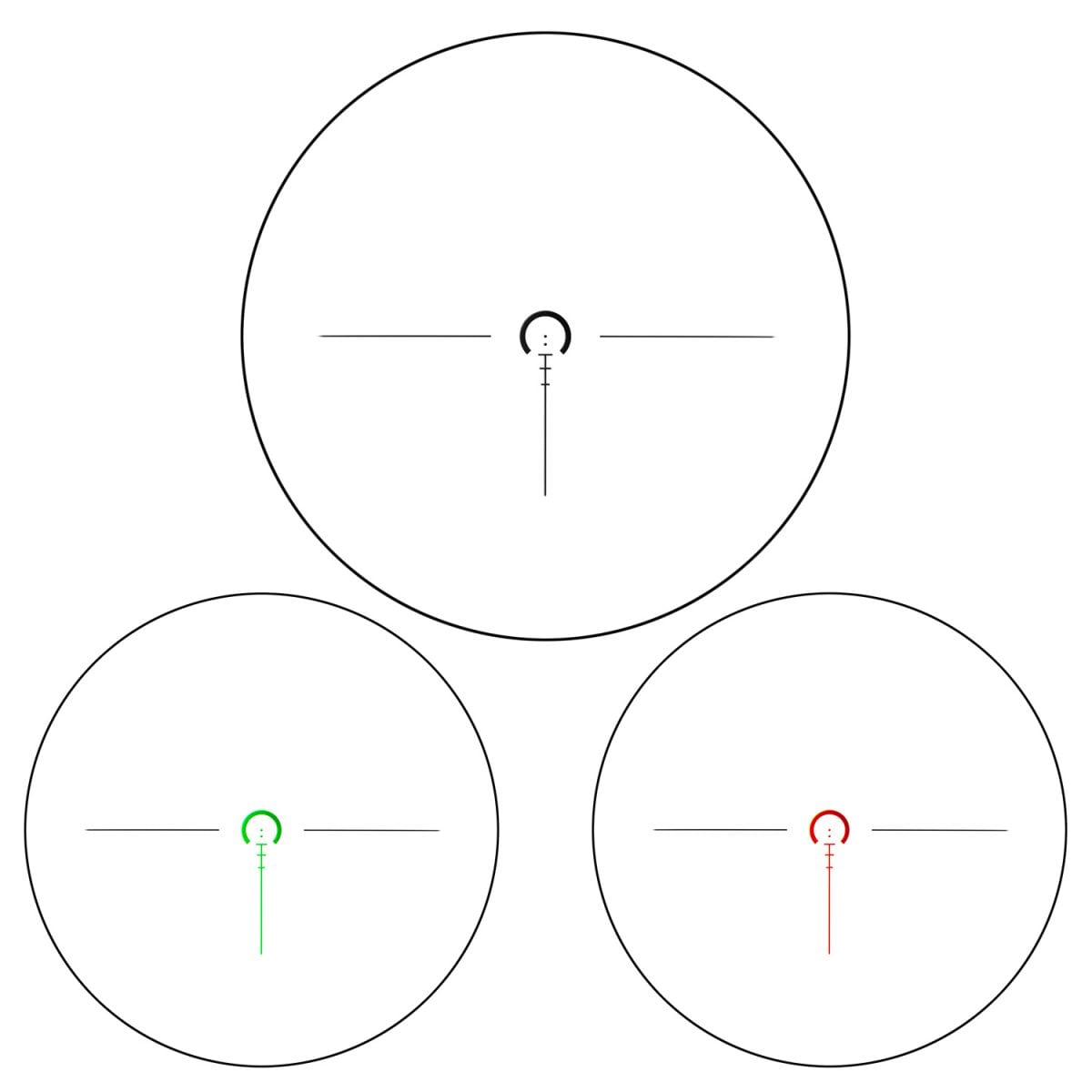 The clear reticle maintains a consistent size while zooming in and out for optimal aiming accuracy. You can also illuminate it both green and red, each having 5 levels of intensity.